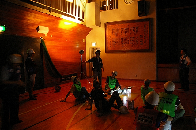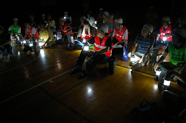 体育館を暗くし灯り確認 |