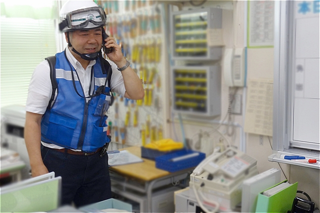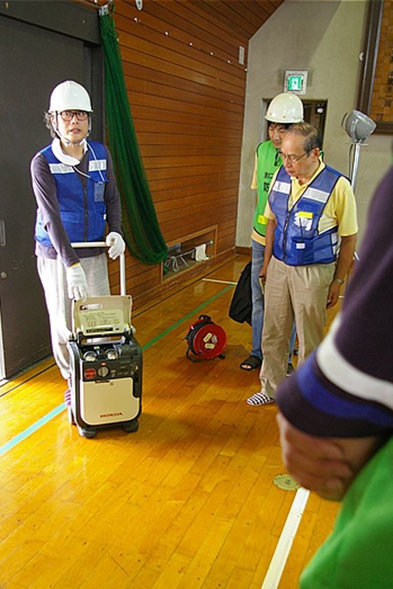 中学校と区役所を結ぶデジタル移動無線機です。職員室に1台設置してあり、区役所へは避難所を開設したことを報告。 |