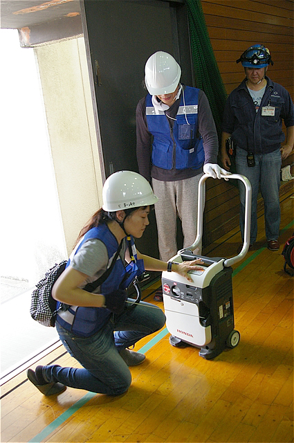 | 投光器はガソリン式のバッテリーが効率的で取り扱いでは、ガソリンを扱うため手の放電を行ってから進める、また光源直視は目を悪くするため間接照明にするなど諸注意があった。 |