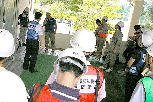 | 横浜市では、震災時の避難場所として身近な市立の小・中学校を地域防災拠点と定めています。都筑区では27の拠点があり、各拠点運営委員会が主体となり、「地域防災拠点訓練」を実施しています。 |