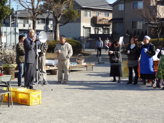 自治会会長の年頭の挨拶。防災、減災を充分に意識した絆づくりを展開したい、と強調された