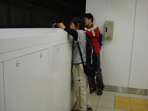 | 試乗会での始発13時1分と13時4分の電車を待っています。 | 入ってくる電車を身を乗り出して撮影している姿が、あちこちで見られました。 |