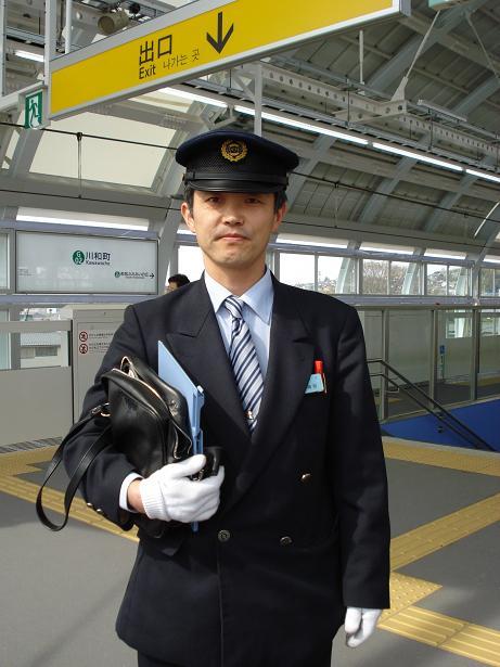 「川和町駅」の近くには、車両基地の他に、グリーンライン総合事務所や職員の休憩施設もあります。 乗務員の交代で川和町駅に降り立った岡田運転手から、お話をうかがいました。 Q: 運転歴はどのぐらいですか A: ブルーラインで8年間、その前に車掌をしていました。 Q: ブルーラインとグリーンラインと比べると、どちらが運転しやすいですか A: グリーンラインです。こちらは最初からワンマン運転を想定して作られています。運転席が右側にあり、出入りも簡単。乗客の乗り降りを確認するモニター画面も見やすいんです。ブルーラインはモニター画面が上にあったので視線をあげなければなりませんでしたが、グリーンラインは視線を変えなくてすみます。 Q: その他にも利点はありますか A: 線路が真っ直ぐなので運転がしやすいです。カーブが少ないので、ホームと車両の隙間がほとんどありません。リニアモーター推進方式なので、加速が出やすいです。 Q: 1000分の58という勾配は、全国一だそうですが、運転しにくいことはありませんか。 A: ありませんよ。慣れていますから(笑)。むしろ車両基地に入る時の勾配がきついんですよ。 ブルーラインとグリーンラインは運転方式が違うので、両車の運転手が兼任することはないそうです。 |