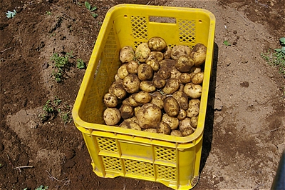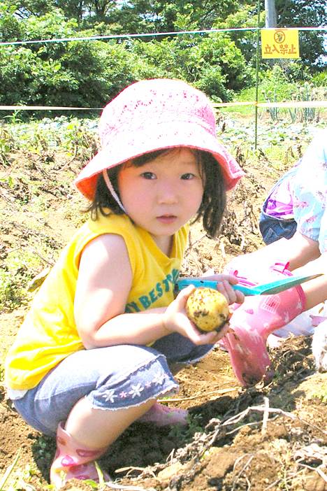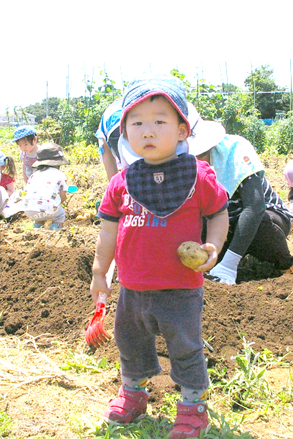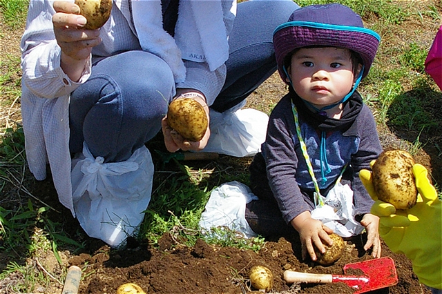 畑では、丹精込めてこの日のために育てあげられたジャガイモが土の中から沢山顔を出すと、親子ともども歓声が沸き起こっておりました。