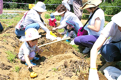 青空の下で土に触れ、自然の恵みを感じ、親子の触れ合う笑顔は最高でした。 |