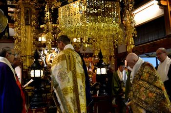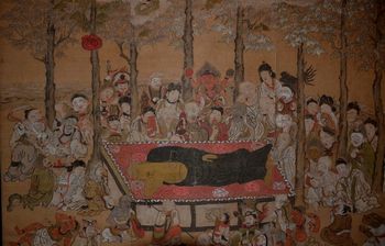 心行寺の涅槃図は、縦270センチ、横160センチの絹地に肉筆で描かれたもの。軸心には「延宝7(1679)年2月12日、11世弁誉保残(べんよほざん)和尚時代に、芝・田町・札乃辻・表具師庄兵衛」という記録がある。普段は公開していないので、この時に拝見できてラッキーだった。 左は、お釈迦さまが沙羅双樹のもとで亡くなった時の様子。大きな涅槃図の一部だが、弟子達はもちろん、鳥や虫までも嘆き悲しんでいる。なお涅槃図の絵解きは心行寺のHPに載っているので興味のある方は次をクリック。 https://www.shingyouji-yokohama.or.jp/ 左は法要のために入堂する導師たち。会場は、荘厳な雰囲気に包まれる。横浜市仏教連合会会長の山本師の表白文の奉読に続き、参会者全員でお経を唱えた。振り仮名がついている経本を貸してくれたので、なんとか唱和できた。正直に言うと意味はよくわからない。 後で、花祭の取材で顔なじみの大善寺の石川住職に「花祭の時と涅槃会の時では、お経の内容が違うんでしょうか」と聞いてみた。 「お経は宗派による違いもありますし、花祭と涅槃会で極端な違いはないと思います」と答えてくれた。 仏教会の会長さんたちの話で印象に残ったのは、次の話だった。「お釈迦さまは生まれ故郷に帰る途中、純陀という人が布施として差し上げたキノコの中毒でクシナガラの沙羅双樹の下でお亡くなりになったのです。純陀は責められる立場ですが、お釈迦様は慈悲の心でお許しになり、おおいに功徳があると思いなさいと弟子たちに言い残しました。紀元前383年2月15日のことです」 会場には、立ち見が出るほど大勢の人が詰めかけ、法要や講演に聞き入っていた。檀家や信者ばかりでなく、私のような部外者もいたと思うが、なんといっても仏教は日本人の生活や習慣に溶け込んでいる。違和感なくお坊さんのお説教が耳に入ってきたのは、そのせいかもしれない。