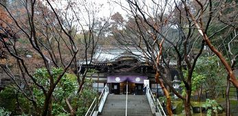 都筑区荏田東にある心行寺(左)で、2月6日に44回涅槃会(ねはんえ)が行われると聞き、行ってきた。仏教の世界では、お釈迦様の誕生日(花祭・降誕会−4月8日-)と、悟りを開いた日(成道会−12月8日−)、入滅した日(涅槃会−2月15日−)を三仏忌と言うのだそうだ。 花祭は、去年の4月に大善寺の花祭を取材したばかりだ。でも入滅した日の涅槃会は知らなかった。行かずばなるまい。 この寺は都筑区の中心駅「センター南駅」から徒歩7分と交通も便利だ。区役所や病院の裏手に位置している。 それにも関わらす、境内は広く、木々が茂っていて深山幽谷の言葉が大げさには聞こえない。檀家さんばかりか、季節ごとの花や緑に惹かれて訪れる人も多い。特に紅葉はお勧め。心行寺は、新編武蔵風土記にも「荏田村渋沢谷にあり。江戸芝増上寺の末寺なり。開山相誉(そうよ)、慶長19年化す・・」と載っている。これから推測すると、約400年前の開山ということになる。 左写真は本堂への階段。 心行寺の安田住職に取材の許可を得るために連絡をとった。左は涅槃会の記念撮影での住職。「涅槃会は44回にもなるんですね。都筑に長いこと住んでいるのに知りませんでした」 「ご存じないのは無理もありません。心行寺でやるのは初めてだし、主催者ではないんです。横浜市の仏教連合会が中心になって、各区が順番でやっています。今年が都筑区の当番だったので、境内が広いし駅から近いということで、指名してくださったのです」 「仏教会もいろいろな組織があるんですね」 「神奈川県仏教会が成道会を、横浜市仏教連合会が涅槃会を、各区の仏教会が花祭の法要をしています。持ち回りでやることで、結束を高める良い機会になっているんです」 ちなみに、横浜仏教会に属している寺は436寺もある。都筑区では31寺が所属している。 都筑区の寺については、交流ステーションで取材しているので、これも併せてごらんいただきたい。