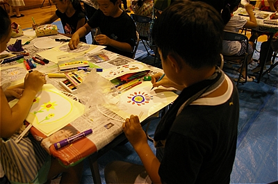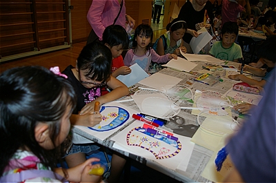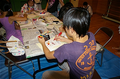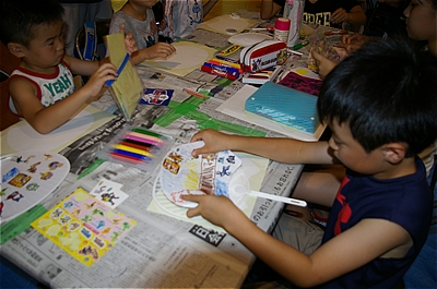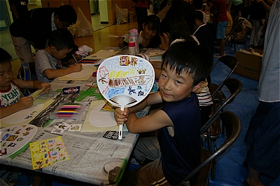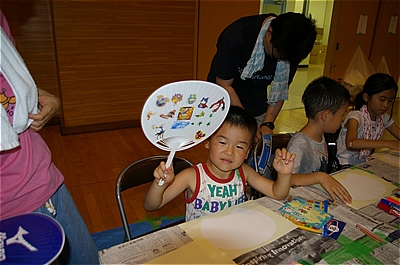 特にうちわ作りは、サインペンで思い思いの絵を描いたり、沢山の種類のシールを貼ったりして、世界で一つしかない思い出のうちわ制作に親子で取り組んでおりました。