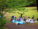 この旗の出ている日は、プレイパーク のある日。この日は、広場で火が使え たり!ダンボールをつなげて滑り台を 作ったり! 竹のこ堀をして 筍を 焚き火につっこんで焼いて食べたり! ロープのブランコを作ったり・・・ イベントもり沢山!!! |