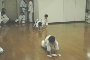 稽古終了後には子供たちで雑巾がけ。 |