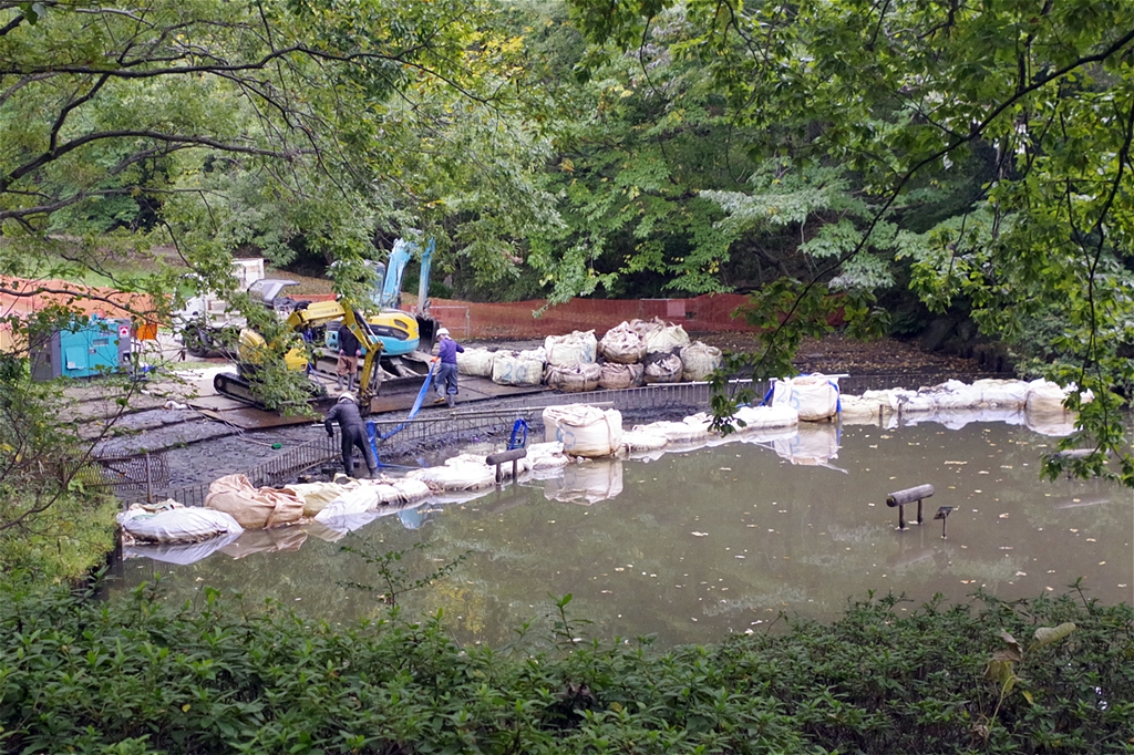 生徒さんが入るため一部池の水が抜かれた |