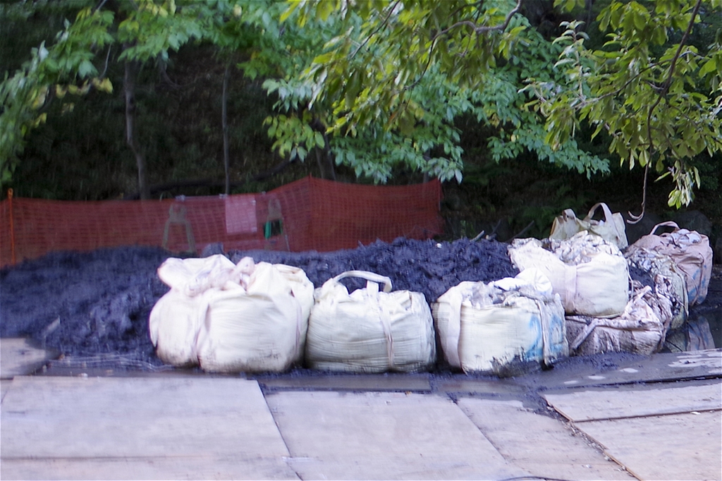 堆積した泥集め |