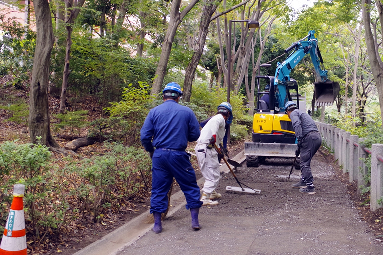 そんな自慢の景観を損ねないよう、緑道の舗装にもふるさとを感じさせる土舗装を残しながらの整備を行っていた。緑道は区民の生活の道だけではなく、心を癒す道として果たす役割は大きい。