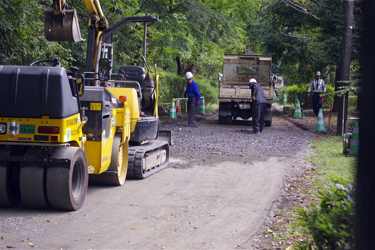 ロードローラーで人が歩きやすいように、