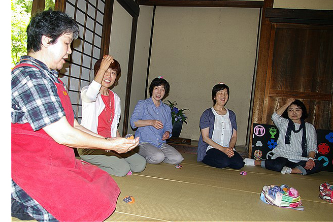 | あそびフォーラムに参加された親子ずれや、奥様方は、昔どこの子供達もお母さんからわらべうたを歌いながら、教わった日々(お手玉)の記憶が蘇ってきたようで、皆さん顔を輝かせチャレンジておりました。 |
