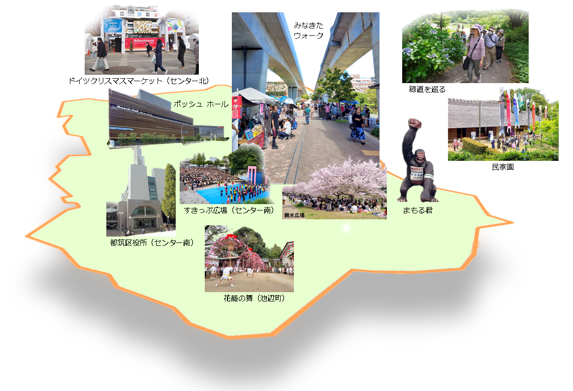 車道と歩道が分離安全。街歩きイベント。都筑双六。 食文化。 |