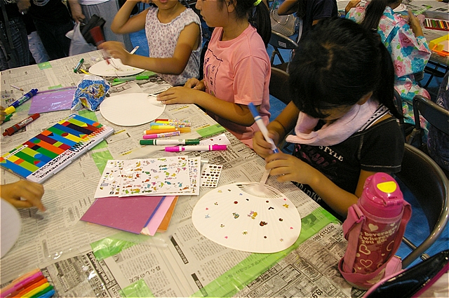 遊びの広場では、うちわ作り(400枚)・空き缶積み・輪投げ・うちわ風船運び・頭でキャッチ・キックボーリング(新企画)・ストラックアウトなどが行われました。