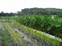 | 2009年8月22日(土)10:30~12:30 紅あずまプロジェクトの蔓おこしに参加しました。 ことしで、4年目となる、芋焼酎「夢のつづき」づくり。このプロジェクトでは、現在は都筑ハーベストが、酒のうちのさんと協力し、都筑の畑でとれた芋で都筑ブランドとなる焼酎を、地域の人たちの力を借りながら、つくっているのです。 この日は、春に植えた苗が、ずいぶん育って、からまった蔓をほどき、まわりの草取りをする作業をしました。 昨年までのようすはこちら 都筑ハーベストのホームページはこちら |