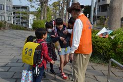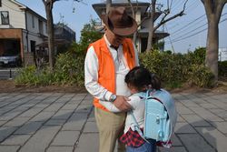 4月22日の朝、筆者も「ゆうやけ橋」近くの通学路に、千坂さんと一緒に立ってみた。校門が開くのは8時、始業ベルが鳴るのが8時25分だというのに、いちばん早い子は7時40分に、遅い子は8時半に通る。早い子も遅い子も、同じ顔ぶれだという。ほとんどの子は千坂さんの側に寄ってきてハイタッチしたり、腕時計に触って時間を確かめる。中には「おじいちゃん」と言いながら何度もハグを繰り返す子もいる。下の写真をどうそ! ,