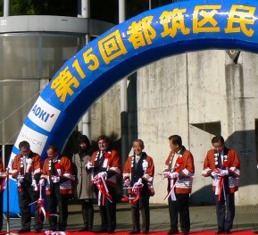 「休日はどのようにお過ごしですか」の質問には「旅が好きですが、今はまとまった休みがとれません。土日もほとんど休めないので、映画を月に1〜2度ぐらいですね」とのこと。 土日は、町内会の運動会・敬老会・グランドゴルフ大会など地域の行事に出席することが多い。特に今年は、横浜開港150周年・都筑区制15周年のイベントもあり、区長が顔を出さねばならない行事が目白押しだ。11月3日の15回区民まつりの開会式で、テープカットをしている区長(左)。テープカットが終わったあとも、センター南とセンター北の両会場を、まわっていらした。 4月に就任後に、8月の市長選挙・衆議院議員総選挙、10月の参議院議員補欠選挙と、2度も大きな選挙があった。選挙は役所あげての仕事になることをはじめて知った。区内には31ヵ所の投票所があるが、区長は投票所の見回りや、開票の立会にも携わらなければならない。 このように、区長の仕事は多岐に渡っていて年がら年中忙しい。忙しい中でも、職員を信頼して温かいまなざしを向けていることを、言葉の端々から感じた。区民にも同じようなまなざしを向けていることを確信して区長室を後にした。