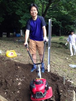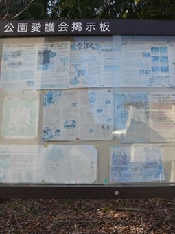「どうして公園の愛護会を作ろうと思ったのですか」 「娘が入学したときに『牛久保小おやじの会』に入ったんです。PTAの会長も引き受けました。おやじの会もPTAの集まりも、いずれ抜けなければいけない。そんなとき学校の隣にある牛久保公園が、もっとオモシロイ場になればいいなと思ったのです。子供たちが笑顔で遊べる場を作りたい、遠くに行かなくてもアウトドア生活を楽しみたい、自分の居場所を作りたい、地元で付き合える仲間が欲しい・・と3人で始めました」 「メンバーのみなさんは樹木や花が好きだから愛護会のメンバーになったのだと思い込んでいましたが、それだけが目的ではなかったのですね」 「牛久保公園は都市大の先生の調査によると、水分を多く含む土壌で植物にとって最適な土地だとわかりました。花壇の場所も、朝日は当たるけれど西日は当たらない。花にとっては最適なんです。植物好きでなかったとはいえ、今では堆肥の作り方や球根の育て方も勉強していますよ。楽しみながら、いろいろなことにチャレンジできる団体にしたいんです」 「樹木や植物は100種類もあります。樹名板もかかげていますが、板を縛る紐の寿命が短いのが悩みです」 「草刈り・花植え・剪定のほかに、ごみ拾い・落ち葉掃きなど、やることはたくさんありますね。土日しか活動できないから、1年中忙しそうですね。活動日を教えてください」 「愛護会の活動日は原則として第2土曜がミーティング、第4土曜が作業日です。ほかにも他の地域の祭りを手伝ったりピクニックをしたり、ほぼ1年中活動していますよ」 「メンバーはたくさんいるんですか」 「18名ぐらいです。そのうちの7~8名が子育て中の女性で、公園にプレイパークを作ろうとしている仲間です」