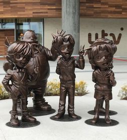 「最後になりますが、どんな仕事をしているんですか。今までしてきた仕事で思い出深い出来事はなんでしょうか」 「大阪の読売テレビ勤務です。東京、名古屋、大阪など転勤が多かったのですが、それぞれで懸命に仕事をしましたよ。 思い出深い番組は、全国放送した”夢色パティシエール”というパティシエールを目指す女の子の成長を描いたアニメですが、全国の人から元気をもらったと感想が寄せられました。こういう話を聞くと、この仕事をしていて良かったなあと思います」 「今は大阪に単身赴任だそうですね。週末には横浜に戻り、地域活動もするなんて驚きです。パワフルですねえ」 「関連会社のエイデックに出向中です。読売テレビの番組のテロップ・フィリップ・CG・HPを作ったり、データ放送(dボタン)、目や耳が不自由な方向けの字幕・解説放送も行っています」 「読売テレビの写真を数枚見せていただきましたが、名探偵コナンが活躍ですね」 「読売テレビ制作のアニメ”名探偵コナン”は外国にも知られています。記念写真を撮りたがる人も多く、玄関には名探偵コナン像が設置されています」 下の3枚の写真は大熊さん提供。