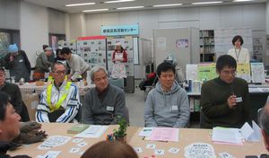 今回の訪問は、左写真の大熊保幸さん(58歳)。ひと訪問は長いこと心がけていてお願いすることもあるし、突発的に「この”ひと”の話を聞きたい」と思うこともある。大熊さんの場合は後者。ひとこと話しただけで、魅力的なお人柄が伝わってきた。 2019年12月に区民活動センター主催で「現役世代の男性も地域で活躍」という会合があった(右)。仕事をしながらも地域活動もしている現役世代の6人がゲストスピーカーだった。 地域活動の主役は、主婦かリタイアしたシニア男性がほとんどだ。リタイアしても地域に溶け込めず、現役時代の友達としか交際しない人もいる、引きこもり状態の人もいると聞く。 そんな中、フルタイムの仕事をしているのに地域活動でも中心的な役を担っている人は、どういう時間配分をしているんだろう、本職に差しさわりがないのだろうか、家族との団らん時間はあるのだろうかなど、余計な心配までしてしまう。 6人の方すべてを訪問したかったが、それは次の楽しみにとっておくことにして、今回は牛久保公園愛護会の設立者のひとり大熊保幸さんに会ってきた。