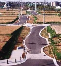 「ニュータウンは当初の理想通りになっていますか」と少し意地の悪い質問をしてみた。 「そうですねえ。日本でも有数のニュータウンだと思いますよ。歩車道分離・133もの歩道橋・歩行者専用道のネットワークコミュニティ道路・U字パターンの行き止まり区画道路(左)など、全国のモデルにもなっています」。「このように、道路・公園・緑地は住民が喜ぶ環境になっていますが、一方では崩れゆくニュータウン現象も起こっています」と、心配する。 「問題は、個人の財産や考えを強制できないことなんです。次第に宅地が細分化され、そこでどんな商売をしようが、農地をつぶして駐車場にしようが文句をつけられません。そのうち、ゴミゴミしたつまらない街に転落するおそれもあります。せっかくの美しい街が破壊されないために、考えなければならない時期にきています」。 「小学校は当初の計画では27校でしたが、15校(NT地区内)しかありません。中学校も13校の予定が6校です。市は児童数の減少を言ってますが、大規模校がかなりあって問題です」。 「器は立派でも、中身の充実には人間の交流が必要です。でも約7万5千所帯のうち、町内会に入っているのは4万所帯にすぎません。これもコミュニケーションという点では、好ましい現象ではありません」。 40代半ばから携わっていたニュータウンが完成したときは、清水さんは「男冥利につきる」と感無量だった。でも今は、必ずしも理想通りになっていない。崩れゆくニュータウンを、なんとかして食い止めたいと思っている様子が伝わってくる。