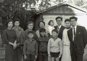 「前田家の風呂は五右衛門風呂でした。僕は井戸から水を汲んだり、薪割りや風呂炊きをやりました。おじいさんは、風呂が大好きだったけれど、湯加減が難しかったですよ」 古老やお付き合いのあった方が語る収治先生も真実。孫の伸治さんが語る話も真実。「神さまのような人だった」と言われても、家族が戸惑うのは当然かもしれない。 伸治さんがお祖父さんと同居した時、収治先生はすでに77歳。往診の依頼があれば夜中であろうとかけつけた元気はつらつの赤ひげ先生ではない。 「写真を撮らせてください」と頼んだら、「撮られるの嫌いなんです」と断られた。「若い頃のならいいですよ」と自宅の車庫前で昭和37(1962)年に撮った写真を見せてくれた。右端が、伸治さんご夫妻。赤ひげ先生のご子孫は、末広がりである。 直系のご子孫からエピソードが聞ける幸運に恵まれて、楽しい取材になった。赤ひげ先生の話が、この先も語り継がれていくことを切に願っている。 (2020年6月と7月 訪問 HARUKO記) |