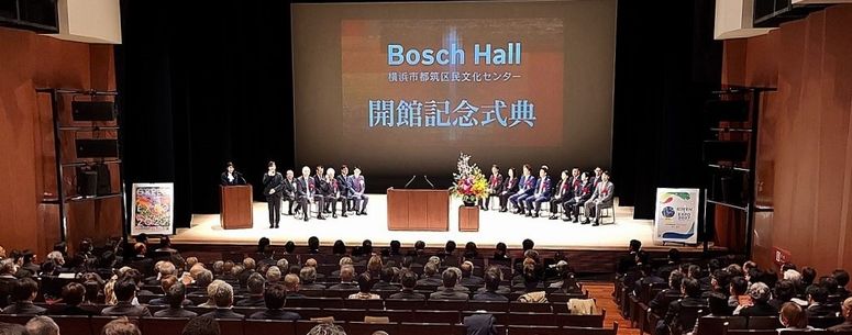 「都筑区にはいつからお住まいですか。みなさんに聞いているのですが、なぜこの地を選んだのでしょう」 「2015年の結婚を機に、最初は北山田に住んでいました。妻(ソプラノ歌手 国立音楽大学卒の川原千晶さん)の実家が北山田なんです。5年前に今の東山田に移りました」 「10年間暮らしてみて都筑の印象はいかがですか」 「緑道があるので毎朝30分ほど走っています。ボッシュホールも出来て地元での演奏の機会も増えそうだし、地域のみなさんとの交流も楽しいです」 末岡さんの話に出たボッシュホール(横浜市都筑区民文化センター)は、2025年3月16日に開館記念式典が行われた。下は、「つづき交流ステーション」が式典の様子をレポートした時の写真。