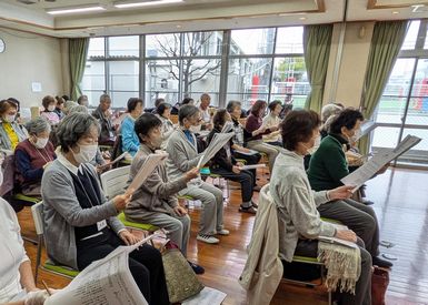 団長の山元さん(090-1262-7107)は男性だが「参加者は50人ほどですが、女性が断然多いです。女性は楽しみ方を知っているし、前向きなんでしょうね」と話してくれた。 「ヴォラーレ」の場合は、東山田地域ケアプラザで 第1第3水曜日 10時から11時30分。参加費は1回1,000円。 見学にも応じている。 他に男性だけの「東山田men'sボイトレクラブ」もある。故本庄奎司さんの夢を引き継ぐ形で、東山田ケアプラザの堂前所長と立ち上げた。