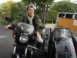 「2013年に独立したんですね。夢別邸以外にどんな施設に行ってますか。横浜全体や川崎など活動範囲は広いと聞いていますが、都筑区だけでも教えてください」 「小規模多機能型居宅介護施設”かもいけ”には、週に2度、10時から6時までいて音楽活動ばかりでなく、介護の手伝いもしています。ほかに新栄ケアプラザ・葛が谷ケアプラザ・北山田小コミュニティハウス・川和小コミュニティハウスなどです。こうした施設ばかりでなく、祭りやイベントなどにも呼ばれているんですよ」 「ところで、話は飛びますが、趣味はなんですか」「趣味と仕事が同じなんです。でもサイドカーを乗り回すのは好きですよ。自分が何をしていくか模索しているときに、サイドカーで日本一周をするつもりでした。この計画は同行者が怪我をしたので、途中で止めたのですが、それ以来ずっと乗っています」と写真を見せてくれた。 介護福祉士と音楽セラピスト。関係なさそうな資格が並んでいる名刺をもらった時は、一瞬とまどった。でも、中川さんの演奏会に数回参加しているうちに、昔聞いた歌や好きだった曲を歌うことで、認知症などの障害が和らぐことが分かってきた。この2つはおおいに関係ある。 今後、認知症患者は飛躍的に増えると聞いている。中川さんの活躍の場も増えるに違いない。 中川さんへの連絡は携帯(090-9349-6289)と固定(045-935-1531)とメール(knight.of.pirates@r3.don.ne.jp)へ。 「これからも歌とギターでみんなを幸せにしてくださいね」と頼んでインタビューを終えた。 (2019年1月と2月訪問 HARUKO記) |