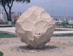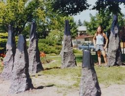 「都立駒場高校の芸術学科に進み、3年生で主に彫刻を学びました。芸大式教育を受けていましたが、芸大にも石の彫刻の指導者がいなかったのです」 「日本はもともと木の文化ですね。縄文や彌生時代にも木の大柱があったことが分かっています。御柱の祭りは今も盛んです。日本にも、石垣、狛犬、野仏、つくばい石などはありましたが、おおまかに言うと石は異文化の素材ですね」 「1964年の東京オリンピックの時に、新宿御苑で石彫の作品群を見て感動しました。石彫家を目指すきっかけです」 その後、50年以上に亘って活躍。原村でのインタビュー数日前には、東京の日大法学部の学生に「現代の危機と芸術」の講義をしてきた。 八木さんの業績やお人柄は、「詩人(うたびと)の声」(水茎舎 早坂義征著 )に詳しいが、活躍の場は日本ばかりではない。2019年、ロシアに侵攻される前のウクライナでの国際彫刻シンポジウムにも参加した。 国際彫刻シンポジウムでは、複数の国の作家たちが酒を酌み交わし、意見を闘わせながら共同作品を制作する。作者の名前は記さないことが多い。 八木さんが参加した国際彫刻シンポジウムの場は、オーストリア、スコットランド、アイルランド、カナダ、トルコ、モロッコ、ラトヴィア、ポルトガル、中国など。シンポジウムは1ケ月以上のことが多く、そこで得られた経験も、八木さんを「詩人」にしているのだろう。 公園などに設置されているものや個展での作品の一部をどうぞ。八木さんのHPの借用(了解ずみ)