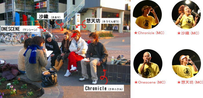 このコーナーは、都筑区を盛り上げてくれている若者・がんばっている若者を紹介していきます。 第1回は 都筑区で今イチバン有名な若者! HIPHOPクルー「参踏歌」です。 |
