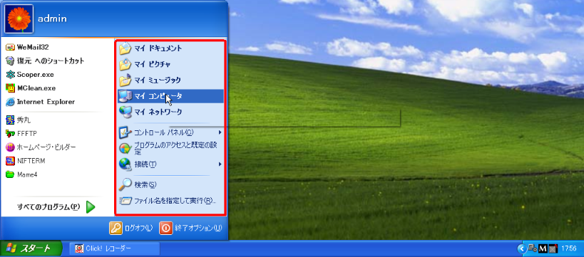 まずフォルダごと圧縮してみましょう。マイコンピュータを起動します。