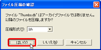 - 圧縮形式を聞いてきますので.lzhを選択して[はい] ボタン をクリックします。