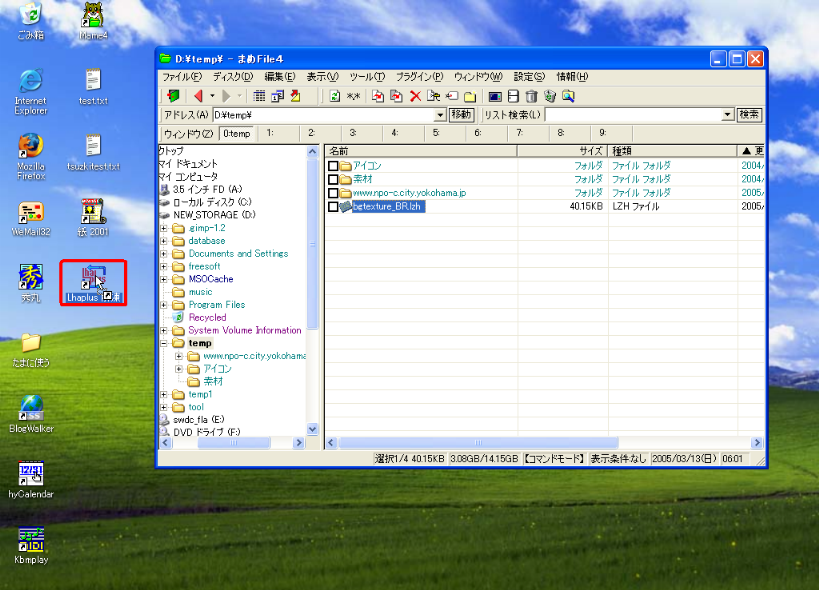- bgtexture_BR.lzhを選択してディスクトップのアイコンLhaplus 解凍]までマウスをドラッグします。