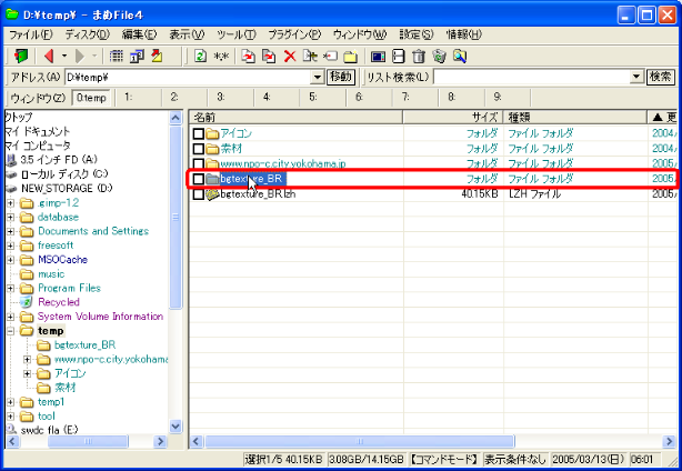 - 下記のbgtexture_BRのフォルダが作成され、中味のファイルが展開されます。これで解凍完了です。