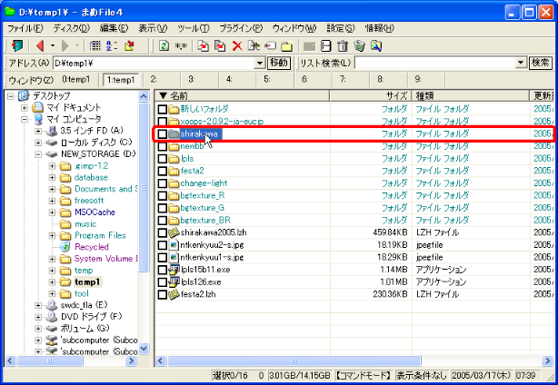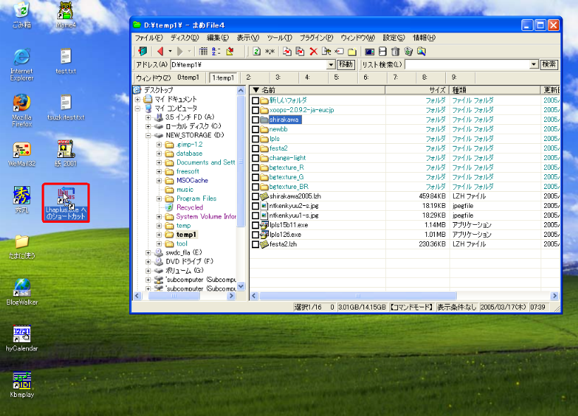 これで指定したフォルダに圧縮された[shirakawa.lzh] ができあがります。