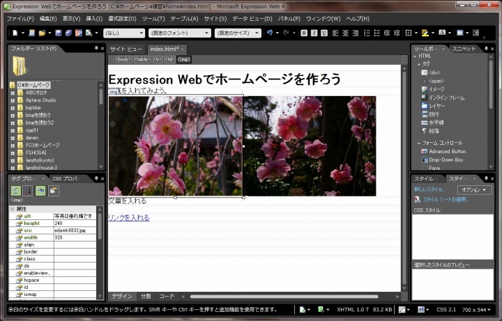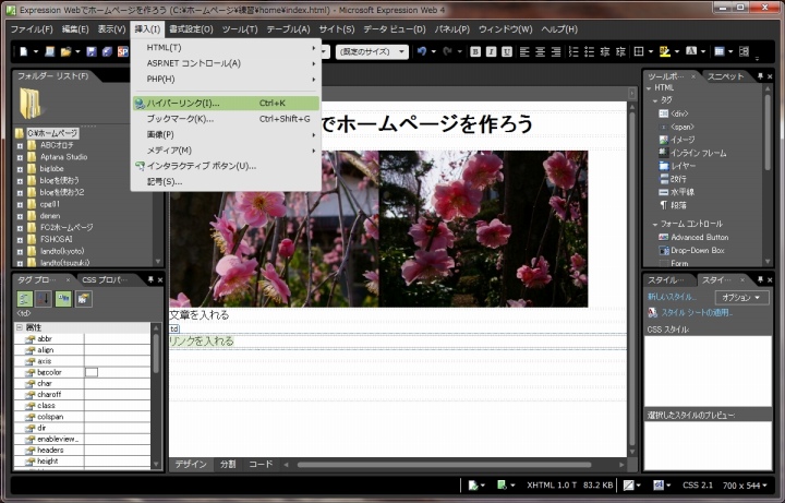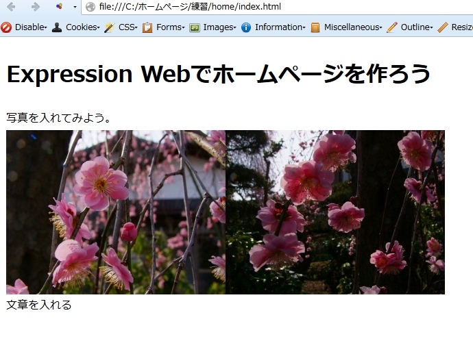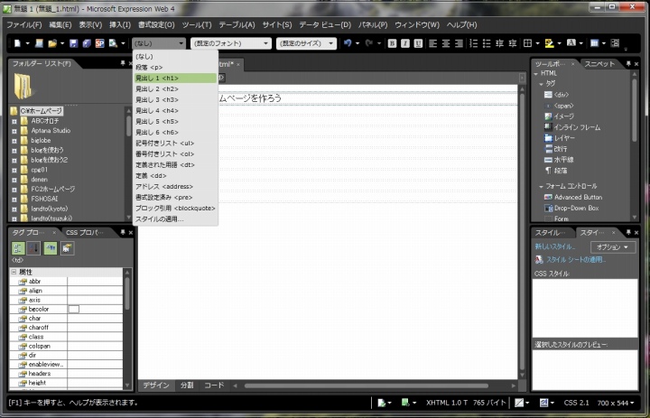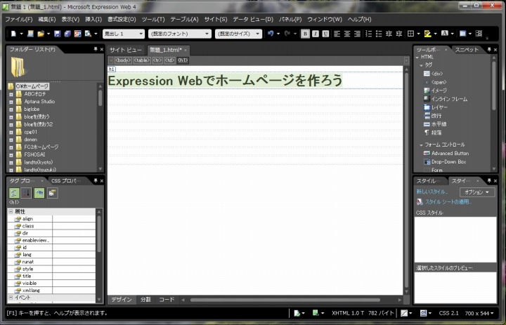 一番上にタイトルをいれる。例「Expression Webでホームページを作ろう」としました。 |