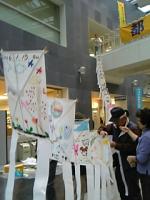 ![]() プレイベント。区民文化祭のプレイベントで作られた凧です。これから飾られるところ。 |