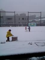 ![]() 雪の中の防災訓練。学校につくと 雪だるま作ってる。 |