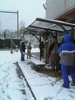 ![]() まだ雪がとけない。階段が滑ります。注意してね。 |