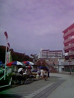 ![]() 中川の朝市。遅めの10時ごろいったらお店が半分くらいになってた。カブトムシも売ってました。 |