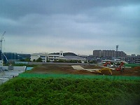 ![]() 阪急の西側。駐車場からの風景。 工事中です。 |