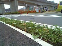 ![]() セン南とセン北の間の新しい道になんか立て札のついている1角があります。新しい植木を植える番号かな |